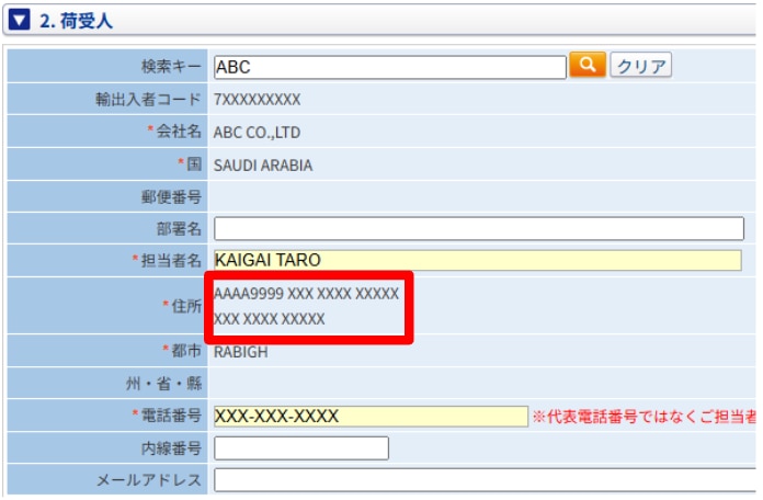 2.荷受人の「住所」欄