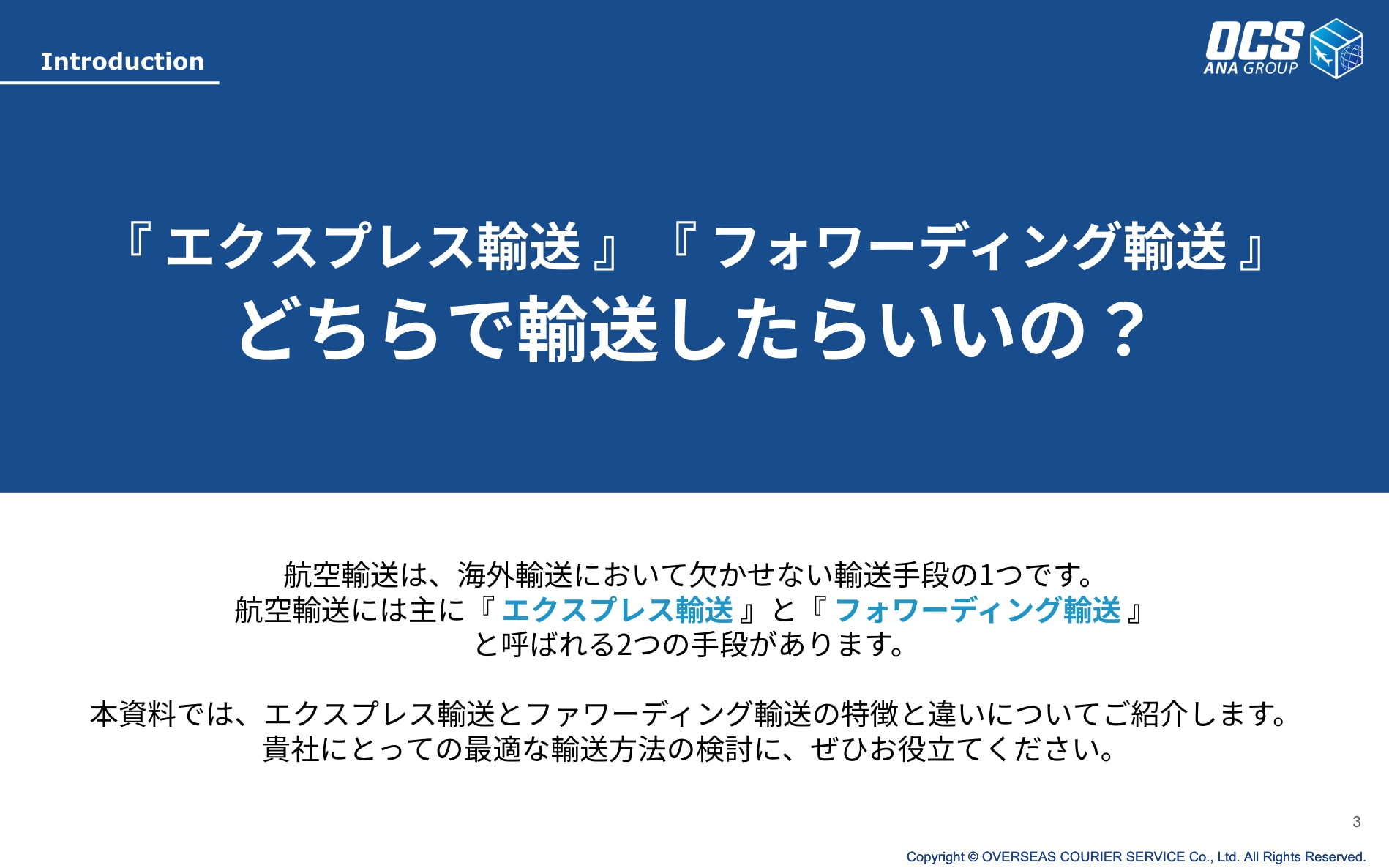 航空輸送サービスにおける「エクスプレス輸送」と「フォワーディング輸送」の特徴と違いについてご紹介しています。